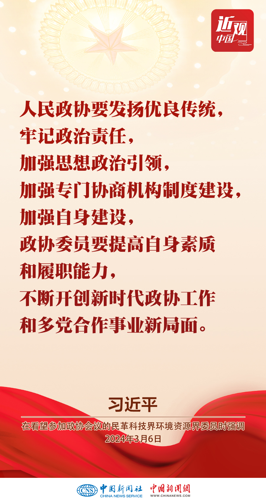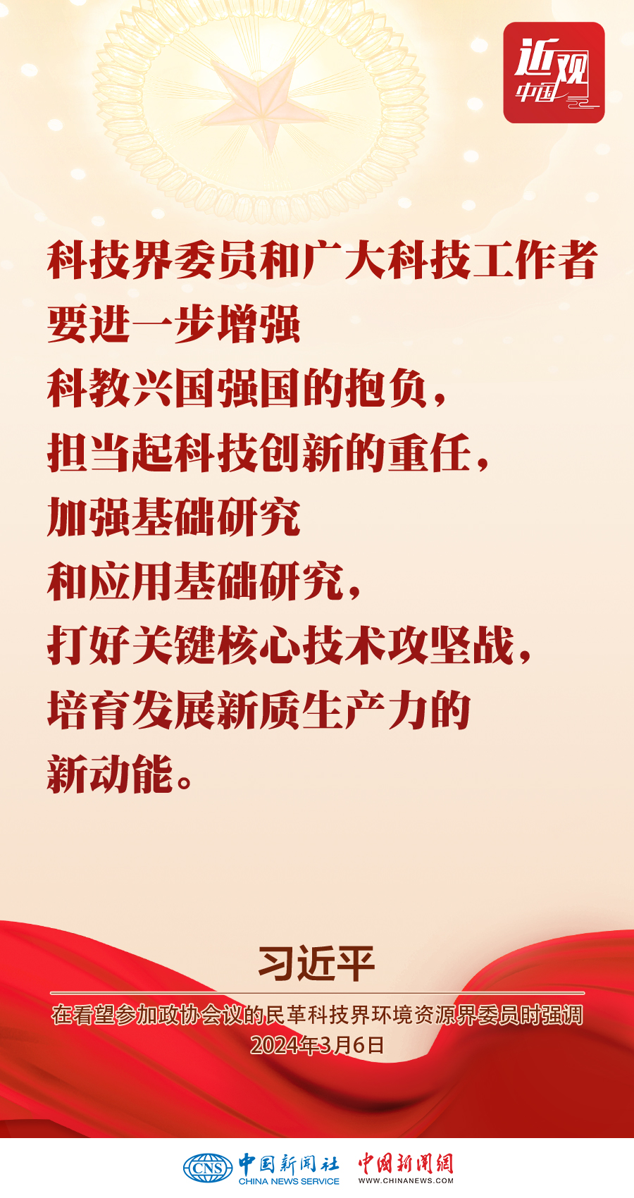 3月6日,中共中央總書記、國家主席、中央軍委主席習(xí)近平看望參加全國政協(xié)十四屆二次會議的民革、科技界、環(huán)境資源界委員,并參加聯(lián)組會,聽取意見和建議。他強(qiáng)調(diào)——