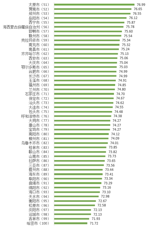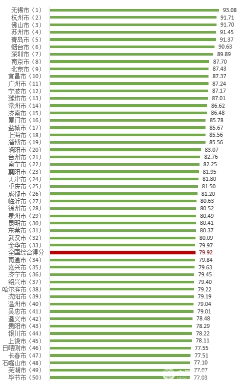 中消協(xié)相關負責人分析指出,100個被測評城市排名總體穩(wěn)定,47個城市滿意度得分提高,城市得分表現(xiàn)和提升數(shù)量均優(yōu)于2022年。除個別城市外,東部和南部城市、經(jīng)濟發(fā)展水平高的城市得分要高于中西部及經(jīng)濟發(fā)展一般的城市;東部地區(qū)加速引領消費者滿意度向好提升,中西部地區(qū)加速追趕,城市之間分差有所降低。無錫、杭州、佛山、蘇州、青島、煙臺、深圳、南京、北京、宜昌分列100個城市消費者滿意度綜合得分第一至十名。