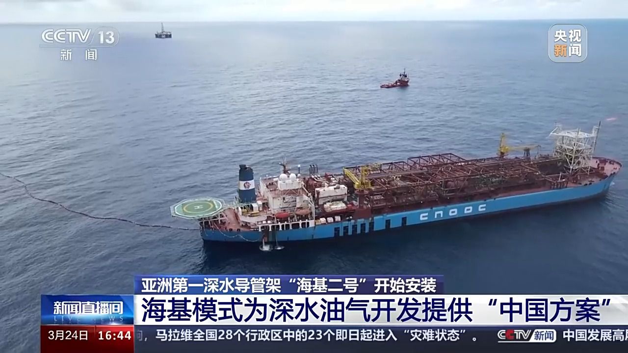 2024年3月24日,“海基二號”深水導(dǎo)管架到達(dá)施工海域。