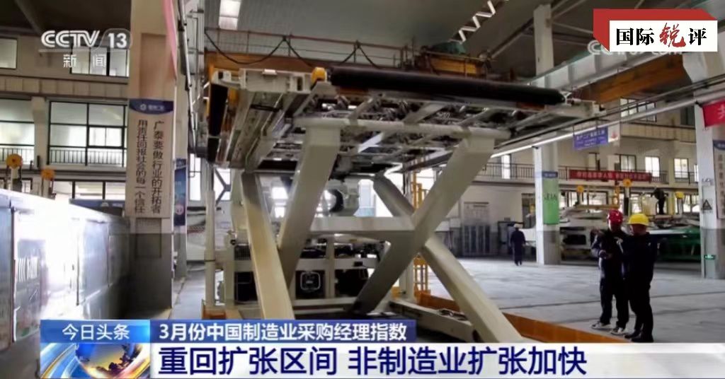 中國官方最新數(shù)據(jù)顯示,今年3月的PMI、非制造業(yè)商務活動指數(shù)和綜合PMI產(chǎn)出指數(shù)分別為50.8%、53.0%和52.7%,比上月上升1.7、1.6和1.8個百分點,均位于50%以上的擴張區(qū)間。其中3月份制造業(yè)活動出現(xiàn)半年來首次擴張,并且創(chuàng)下一年來新高。對此,美國彭博社等外媒稱,這表明中國制造業(yè)前景趨于樂觀,整體經(jīng)濟正在企穩(wěn)。