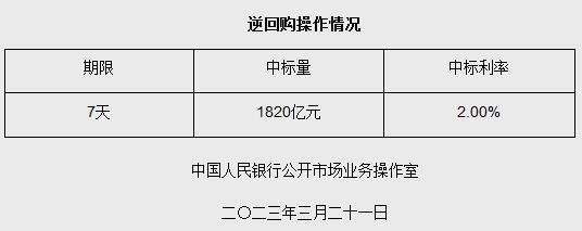 中新網(wǎng)3月21日電 據(jù)央行網(wǎng)站21日消息,為維護(hù)銀行體系流動性合理充裕,2023年3月21日人民銀行以利率招標(biāo)方式開展了1820億元逆回購操作,期限為7天,中標(biāo)利率為2.00%。(中新財經(jīng))