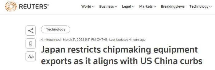 但路透社認(rèn)為,日方的措施是為了配合美國實(shí)施的針對(duì)中國的芯片出口管制措施。英國《金融時(shí)報(bào)》還稱,日本此舉是在履行其與美國和荷蘭達(dá)成的、針對(duì)中國半導(dǎo)體的三方協(xié)議。