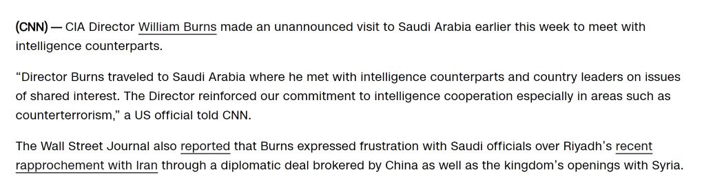 美國(guó)媒體報(bào)道,美國(guó)中央情報(bào)局局長(zhǎng)威廉·伯恩斯日前秘密飛往沙特。伯恩斯此行是對(duì)北京斡旋的反應(yīng)動(dòng)作。