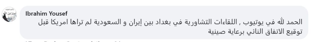 網(wǎng)友易卜拉欣·尤素福一語道破美國(guó)著急的原因:“此前沙特和伊朗在巴格達(dá)多輪接觸美國(guó)看不見,中國(guó)一出面他們馬上就關(guān)注到了?!?/p>