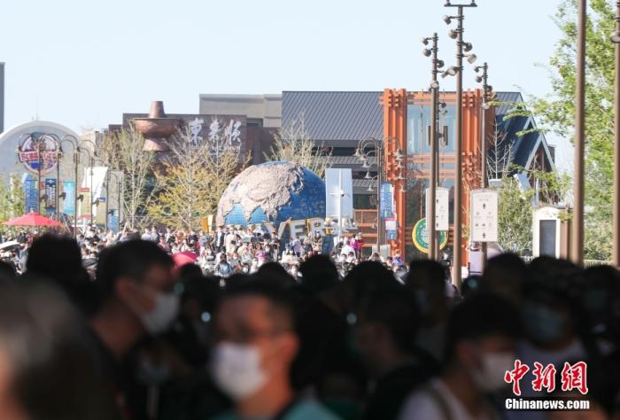 資料圖:北京環(huán)球度假區(qū)內(nèi),眾多游客從環(huán)球城市大道進(jìn)入園區(qū)。 中新社記者 賈天勇 攝