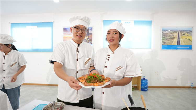 “我最喜歡她做的炒粉。為了適應(yīng)我的口味,她沒有加魚露,而是用中國產(chǎn)的蠔油和香油,有時還會放點老干媽?!眲韵山榻B這道私房美食的時候,洋溢著藏不住的自豪,“今天給大家?guī)磉@道精心準備的炒米粉,我們還專門起了個名字‘中建(柬)一家親’。”