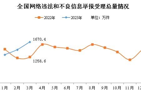 中新網(wǎng)4月11日電 據(jù)中央網(wǎng)信辦舉報中心微信公眾號消息,2023年3月,中央網(wǎng)信辦舉報中心指導全國各級網(wǎng)信舉報工作部門、主要網(wǎng)站平臺受理網(wǎng)民舉報色情、賭博、侵權、謠言等違法和不良信息1670.4萬件,環(huán)比增長14.4%、同比增長32.7%。其中,中央網(wǎng)信辦舉報中心受理舉報44.3萬件,環(huán)比下降22.9%、同比增長19.1%;各地網(wǎng)信舉報工作部門受理舉報74.0萬件,環(huán)比增長18.3%、同比下降12.3%;全國主要網(wǎng)站平臺受理舉報1552.2萬件,環(huán)比增長15.8%、同比增長36.5%。
