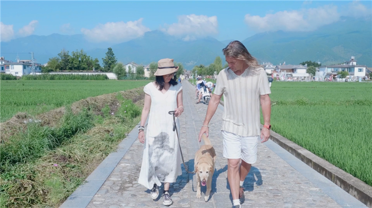 林登和妻子走在云南大理喜洲鎮(zhèn)稻田間。受訪者供圖