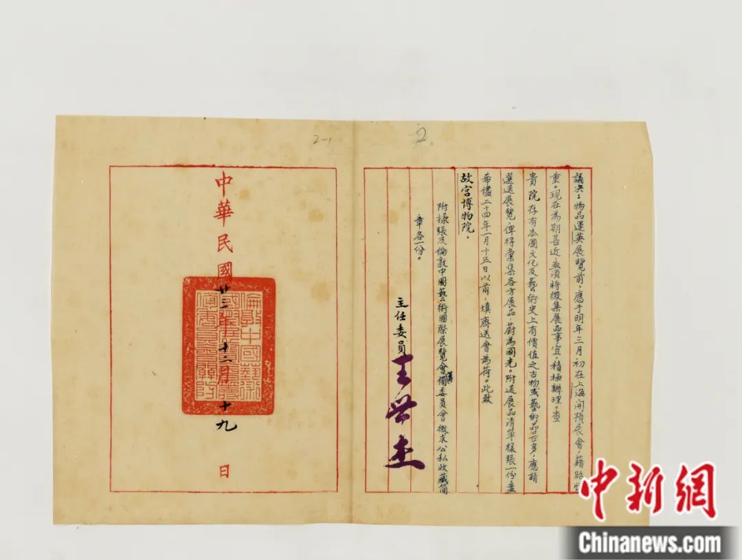 倫敦中國藝術(shù)國際展覽會籌備委員會公函(1) 故宮博物院 供圖