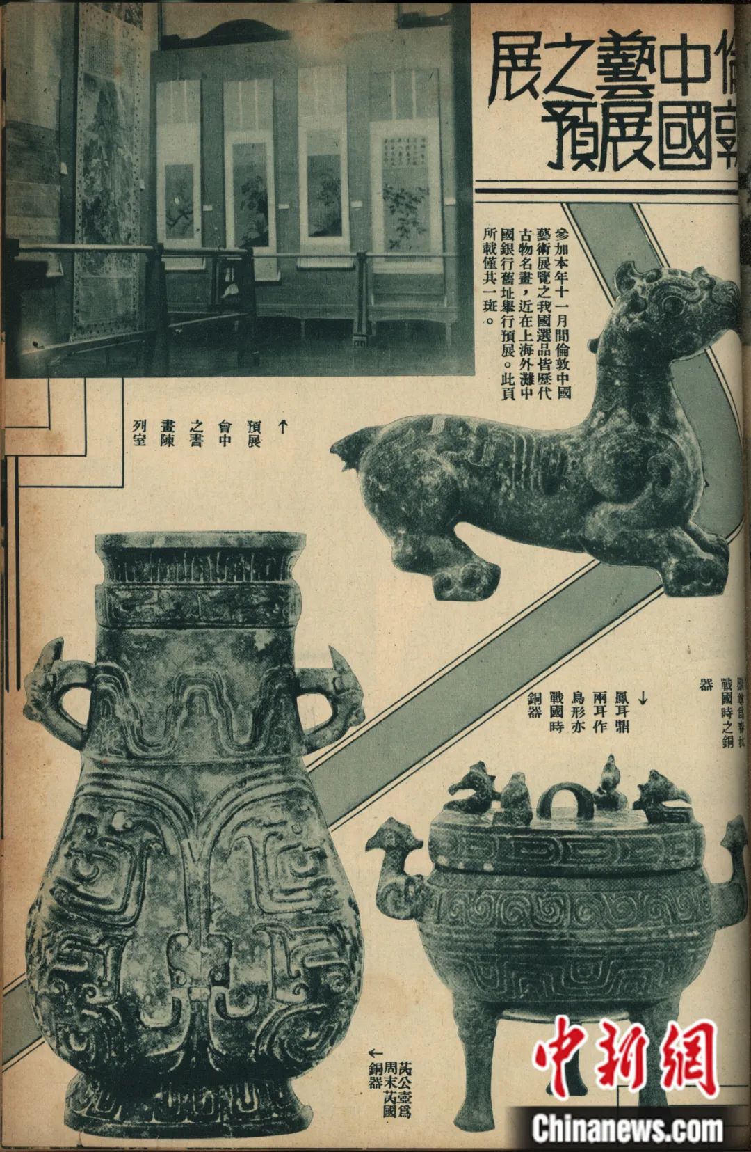 被視為“國之重器”的青銅器,幾乎匯集了當(dāng)時中國主要文化機構(gòu)最重要的藏品(包括傳世品和出土品),共計108件。其中,清宮舊藏傳世青銅器計96件,由故宮博物院和古物陳列所選送;最新考古發(fā)掘出土青銅器計12件,由河南博物院選送的8件為1923年發(fā)掘出土的“新鄭彝器”,由安徽省立圖書館選送的4件為1933年壽縣出土的“楚器”。瓷器出品則以明清官窯瓷器為大宗,且僅限故宮博物院出品,總計352件。書畫出品僅限故宮博物院和古物陳列所,盡量選出各派重要作家的作品,總計175件。