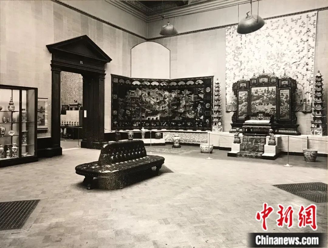 倫敦中國藝術(shù)國際展覽會上展出的皇帝寶座與屏風(fēng)。圖片來源:The Royal Academy of Arts