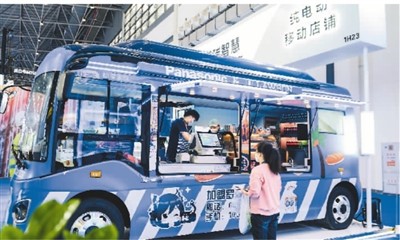 圖為消博會(huì)上展出的純電動(dòng)移動(dòng)便利店。