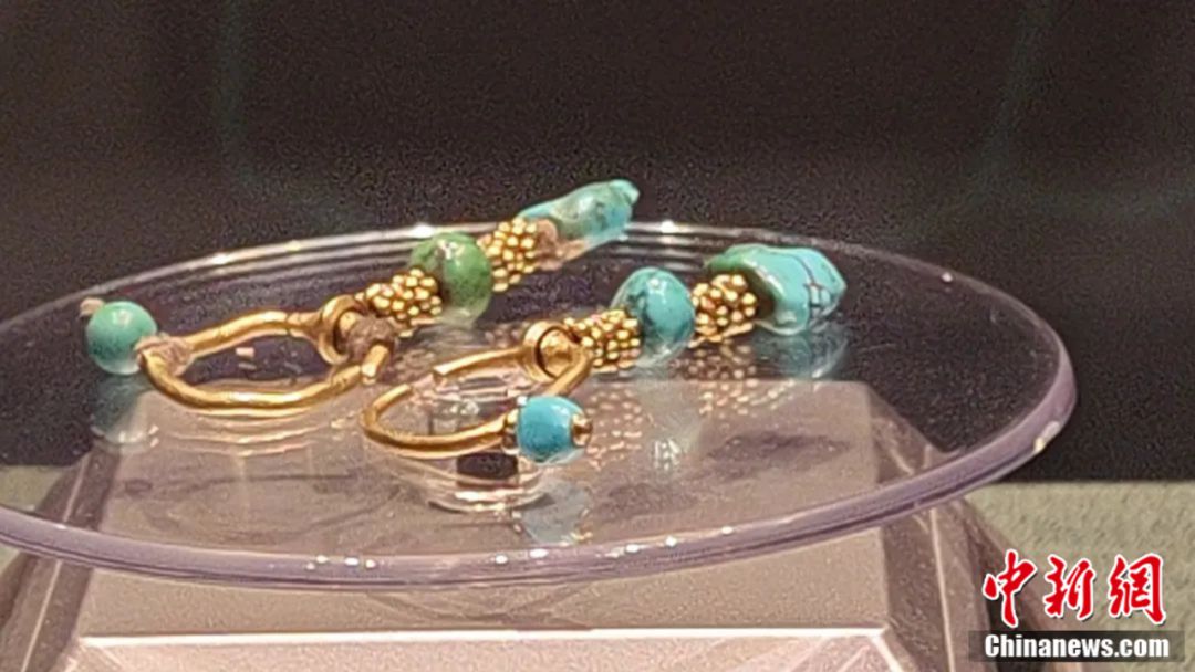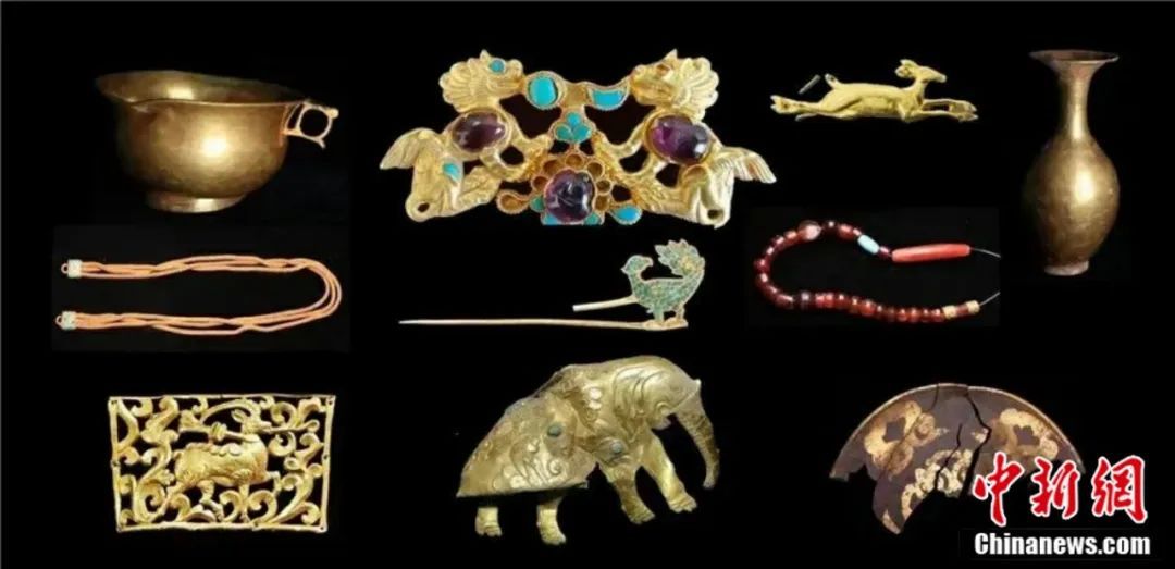 墓中出土的人首魚尾紋金飾片,人物脖頸飾后方飄浮的綬帶,都是典型的波斯薩珊王朝裝飾紋樣。