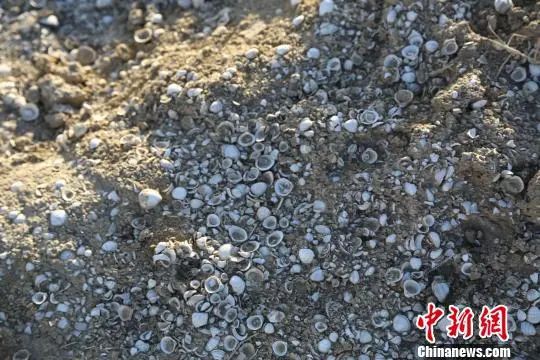 貝殼同含有鹽堿的泥沙凝結在一起,層層疊疊,千姿百態(tài),是迄今為止中國內陸盆地發(fā)現的最大規(guī)模的古生物地層。