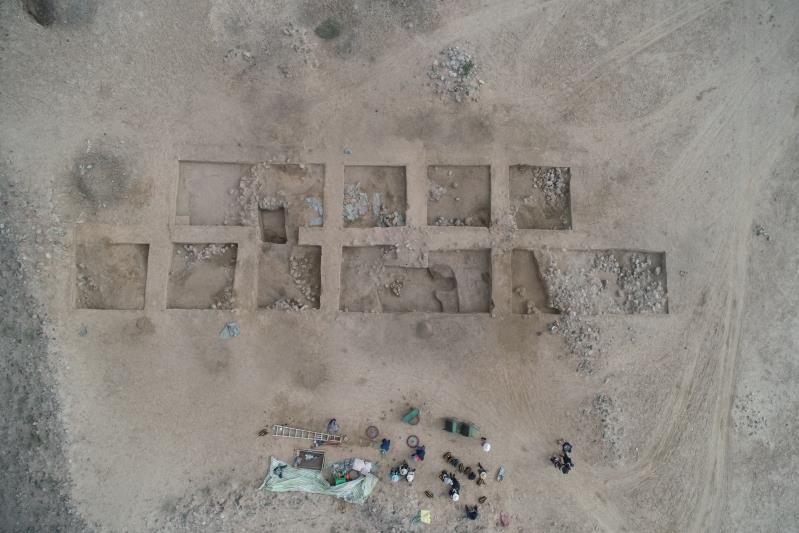 目前,遺址區(qū)和墓葬區(qū)發(fā)掘工作正在有序進行。發(fā)現遺跡有石墻、甕棺、灰堆等,出土遺物有陶片、石器、骨器、毛織品等,陶片中有彩陶。墓葬區(qū)發(fā)現墓葬等,出土遺物有陶片、海貝等。