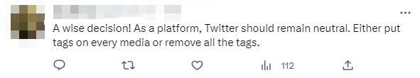 對推特的最新變化,有網(wǎng)友表示歡迎。“一個明智的決定!作為一個平臺,推特應(yīng)該保持中立。要么給每個媒體上都打標(biāo)簽,要么刪除所有標(biāo)簽?!?/p>
