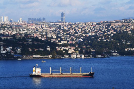 2022年8月7日,一艘從烏克蘭出發(fā)的運(yùn)糧船駛過(guò)土耳其伊斯坦布爾博斯普魯斯海峽。新華社記者沙達(dá)提攝