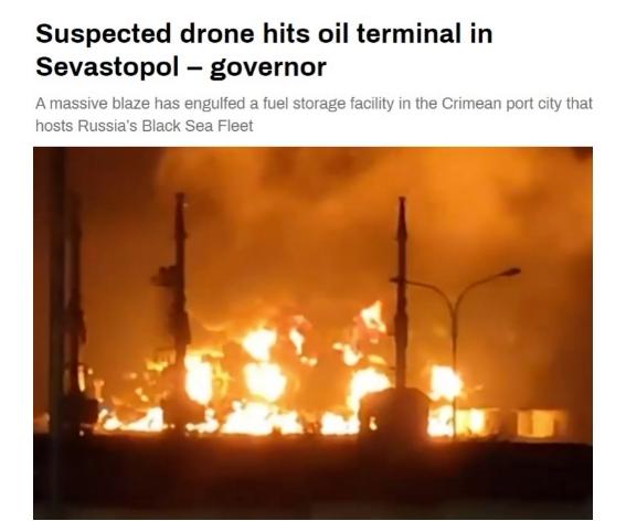 中新網(wǎng)4月29日電 據(jù)“今日俄羅斯”(RT)報道,當?shù)貢r間29日凌晨,俄羅斯海軍黑海艦隊所在地,克里米亞半島的塞瓦斯托波爾市的一個儲油設施遭到無人機襲擊。據(jù)目擊者分享的視頻,襲擊導致儲油設施燃起大火,照亮了夜空,隨后該市上空籠罩著一大團黑煙。