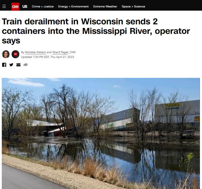 美國克勞福德縣應急管理專家馬克·邁爾表示,這列火車載有危險品。但他稱,掉進河里的車廂中沒有任何被認為是電池的有害物質。