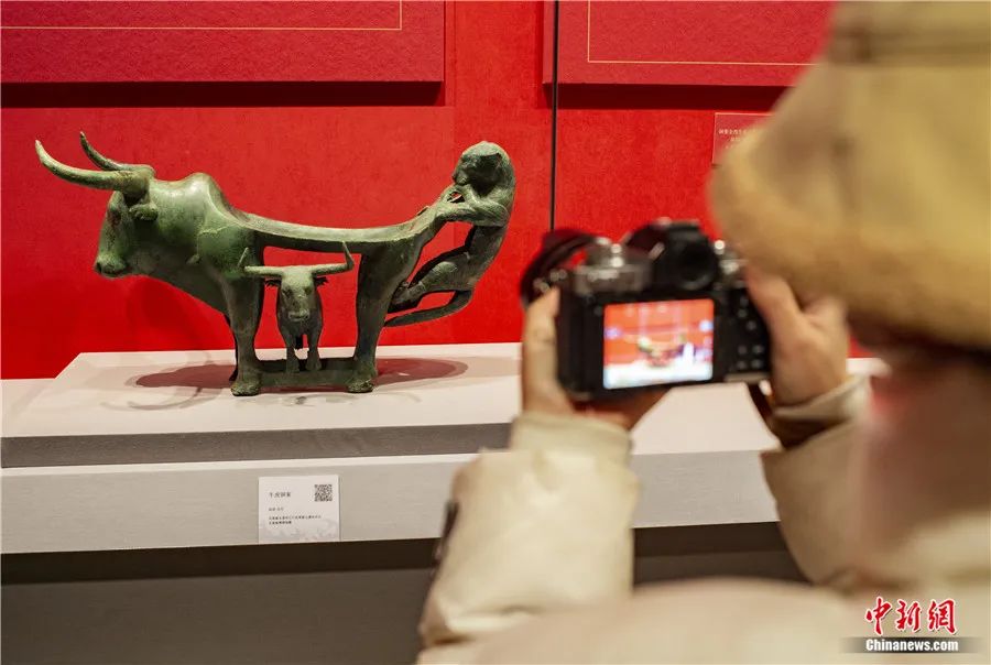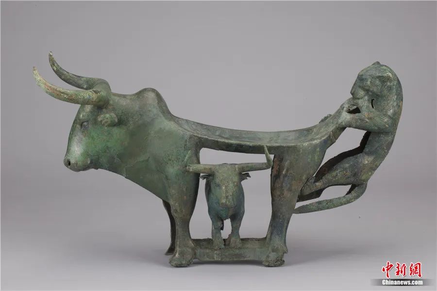 此外,還有專家延伸解讀:在古滇國,虎為百獸之王,象征權(quán)威,牛則是財(cái)富和生命的標(biāo)志。?;~案中的虎、牛形象成為滇人重點(diǎn)表達(dá)的主題,顯示了滇人崇虎、崇牛之情,表達(dá)了對權(quán)力、財(cái)富和生命的向往。