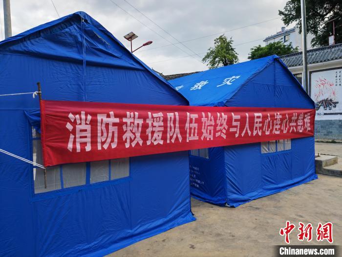 圖為地震現(xiàn)場搭起的的應(yīng)急救災(zāi)帳篷?!≡颇鲜∠谰仍傟?duì)供圖