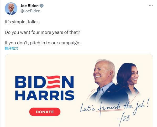 CNN注意到,在特朗普的直播結(jié)束后不久,美國(guó)總統(tǒng)拜登在社交媒體上發(fā)出了政治籌款呼吁,并配文稱,“很簡(jiǎn)單,伙計(jì)們。 你還想再那樣過(guò)四年嗎?如果你不喜歡,請(qǐng)參與我們的競(jìng)選活動(dòng)?!?/p>