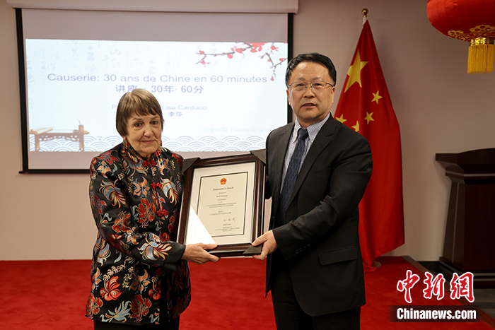 中新社蒙特利爾5月14日電 (記者 余瑞冬)加拿大著名作家、詩(shī)人、漢學(xué)家李莎·卡爾杜齊(Lisa Carducci)13日在中國(guó)駐蒙特利爾總領(lǐng)事館獲頒中國(guó)駐加拿大使館2022年度“大使獎(jiǎng)”。
