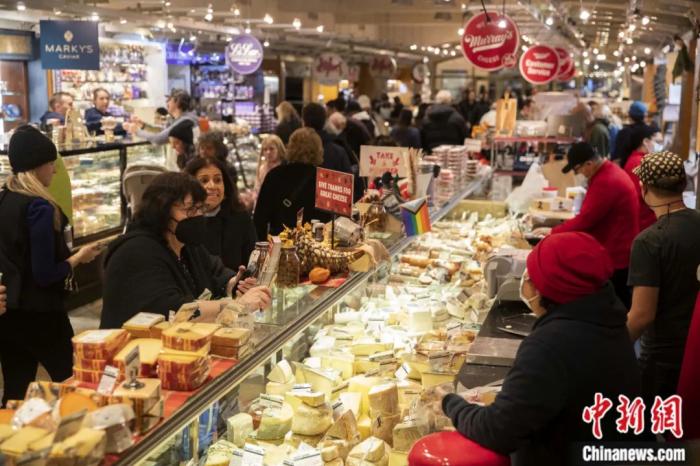 2022年冬季,顧客在紐約中央車站市場詢問奶酪價格。美國在當年遭遇了40年來最嚴重的通貨膨脹。消費者價格指數(shù)(CPI)同比漲幅在6月達到9.1%的峰值后,一直保持在7%以上的高位,持續(xù)“高燒”的通脹令經(jīng)濟承壓。廖攀 攝