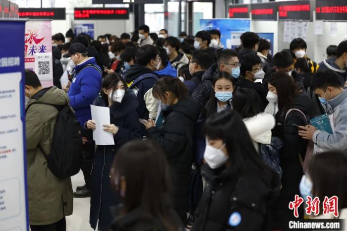 2023年2月8日,北京市教委所屬北京高校大學生就業(yè)創(chuàng)業(yè)指導(dǎo)中心迎來春季首場線下雙選會,應(yīng)聘者排隊等候向用人單位提交個人簡歷。富田 攝