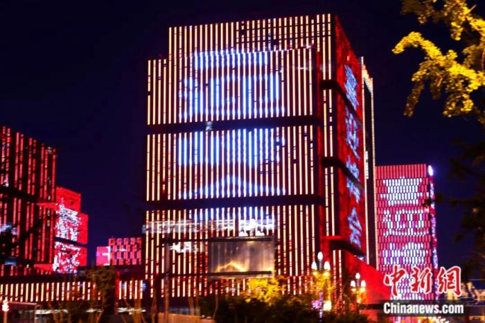 5月15日,陜西西安一處樓群亮起“喜迎峰會”燈光。5月18日至19日,中國—中亞峰會將在陜西西安舉行。張遠 攝