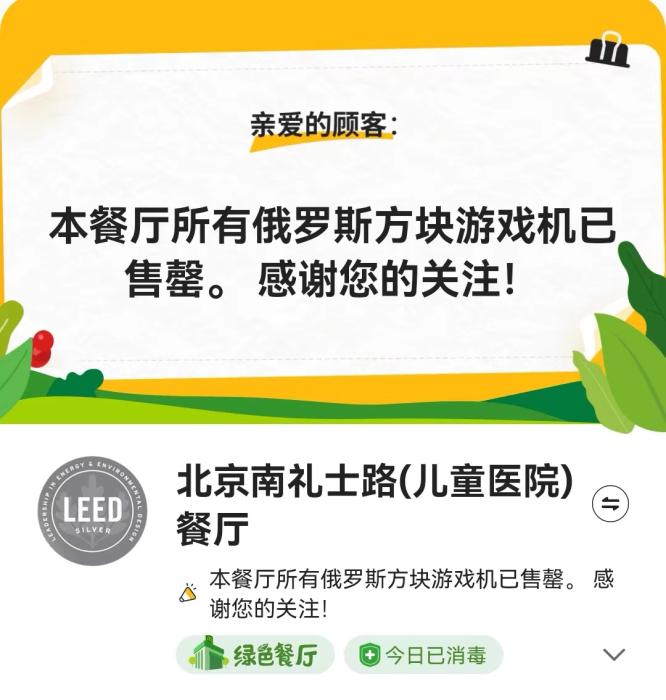 據(jù)麥當(dāng)勞介紹,活動(dòng)期內(nèi)下單購(gòu)買任意產(chǎn)品,額外加30元即可獲得俄羅斯方塊游戲機(jī)一個(gè),全國(guó)限量40萬(wàn)個(gè)。但當(dāng)日就有不少人表示,已經(jīng)買不到麥當(dāng)勞游戲機(jī)。記者25日登錄麥當(dāng)勞APP,北京多個(gè)門店亦顯示俄羅斯方塊游戲機(jī)已售罄。