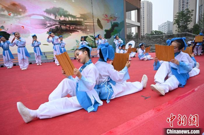 資料圖:學(xué)生們正在進行《弟子規(guī)》經(jīng)典誦讀表演?!£惓?攝