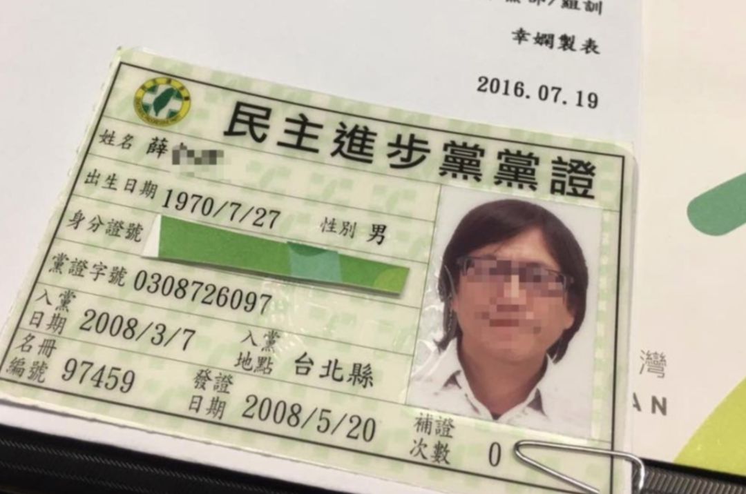 被指涉性騷擾案、且與民進(jìn)黨高層關(guān)系密切的導(dǎo)演“輝哥”,被網(wǎng)友曬出其民進(jìn)黨黨證。圖片來(lái)源:聯(lián)合新聞網(wǎng) 翻拍自該導(dǎo)演臉書(shū)。