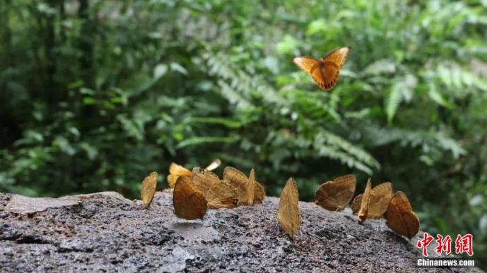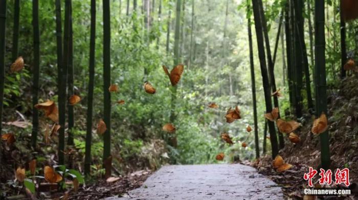 圖為蝴蝶谷林間道路上的箭環(huán)蝶。中新社記者 劉冉陽(yáng) 攝