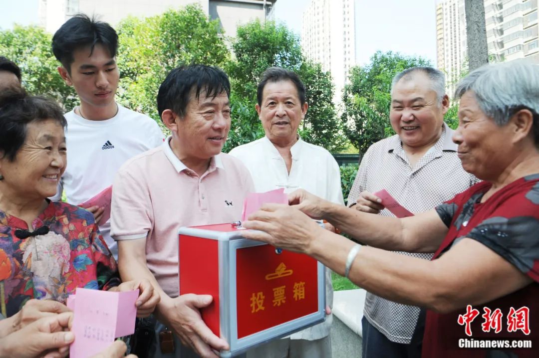 安徽省亳州市譙城區(qū)薛閣街道辦事處西關(guān)社區(qū)舉行第六屆居民委員會選舉大會,居民在流動投票點投票。張延林 攝