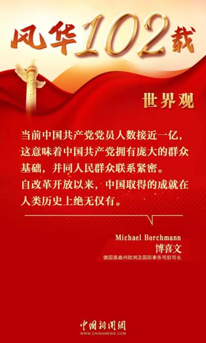 中新網(wǎng)7月5日電 (陳天浩)2023年是中國(guó)共產(chǎn)黨建黨102周年。近日,德國(guó)黑森州歐洲及國(guó)際事務(wù)司前司長(zhǎng)博喜文(Michael Borchmann)在接受中國(guó)新聞網(wǎng)專訪時(shí)表示,中國(guó)共產(chǎn)黨的成功離不開同人民群眾的緊密聯(lián)系。