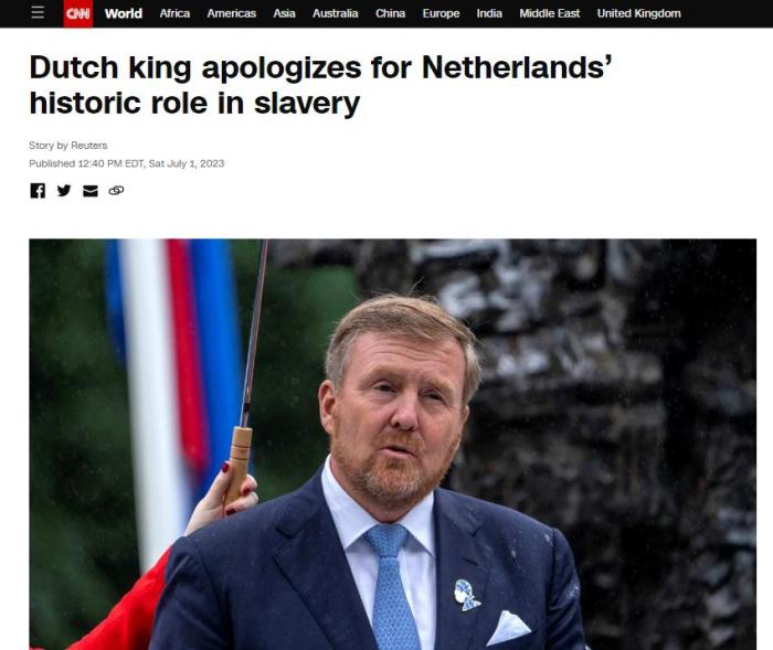 據(jù)美國(guó)有線電視新聞網(wǎng)(CNN)報(bào)道,荷蘭國(guó)王威廉-亞歷山大當(dāng)天出席了紀(jì)念荷蘭廢除奴隸制160周年的儀式,并作出了上述表態(tài)。