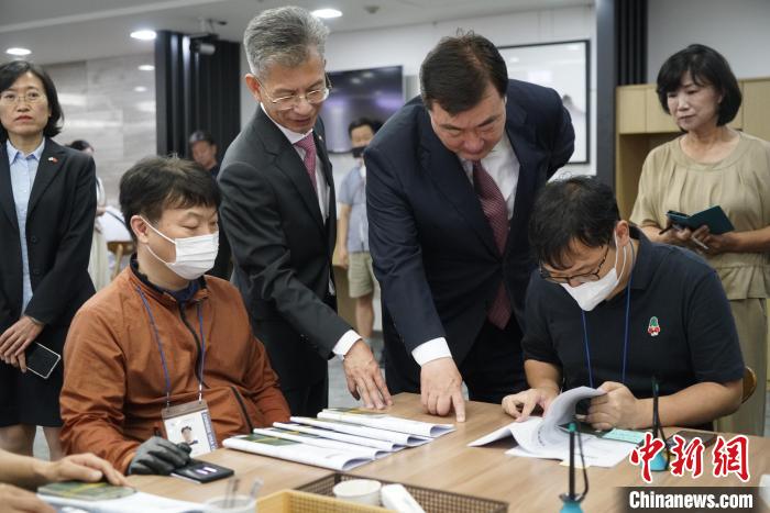 當(dāng)?shù)貢r間7日,中國駐韓國大使邢海明赴首爾中國簽證申請服務(wù)中心調(diào)研。圖為邢海明(左一)考察中心。中新社記者 劉旭 攝
