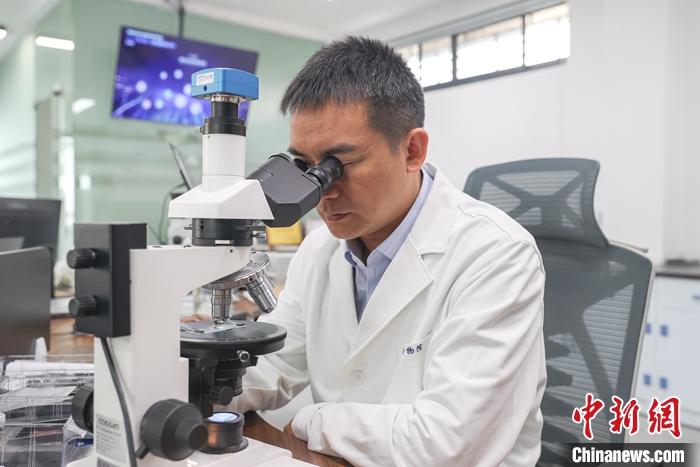 圖為2023年6月19日,景德鎮(zhèn)古陶瓷基因庫(kù)實(shí)驗(yàn)室內(nèi),景德鎮(zhèn)御窯博物院院長(zhǎng)翁彥俊使用電子顯微鏡在觀察古陶瓷標(biāo)本。 中新社記者 劉力鑫 攝