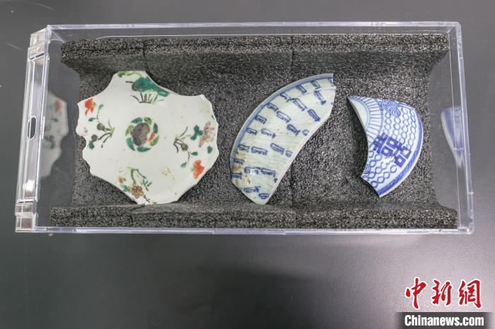 圖為來(lái)自清代晚期木質(zhì)沉船“長(zhǎng)江口二號(hào)”的瓷片。中新社記者 劉力鑫 攝