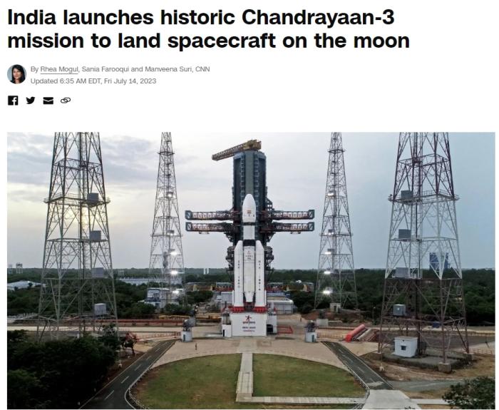 據(jù)報(bào)道,當(dāng)?shù)貢r(shí)間約14:35(北京時(shí)間約17:05),搭載軌道器、著陸器和月球車(chē)的“月船3號(hào)”,從印度安得拉邦斯里哈里科塔(Sriharikota)航天中心發(fā)射升空。著陸器將于8月23日至24日抵達(dá)月球,在月球表面開(kāi)展14天科學(xué)活動(dòng)。