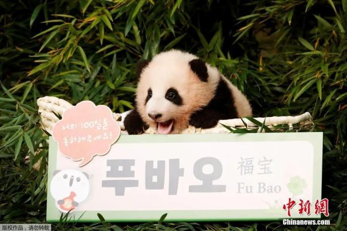 當(dāng)?shù)貢r間2020年11月4日,韓國愛寶樂園表示,7月20日在韓國降生的首只大熊貓寶寶(雌性)取名為“福寶”。