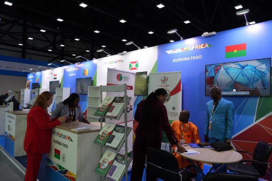 這是7月27日在俄羅斯圣彼得堡拍攝的俄非峰會(huì)非洲國(guó)家展臺(tái)。新華社記者安曉萌攝