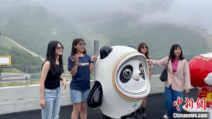 7月29日,海外臺(tái)胞青年在冬奧村“打卡”冰墩墩。中新社記者 張楊彬 攝