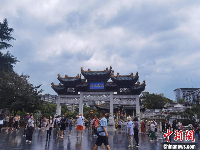 8月1日,來(lái)自中國(guó)各地的游客在貴陽(yáng)市甲秀樓參觀游覽。周燕玲攝