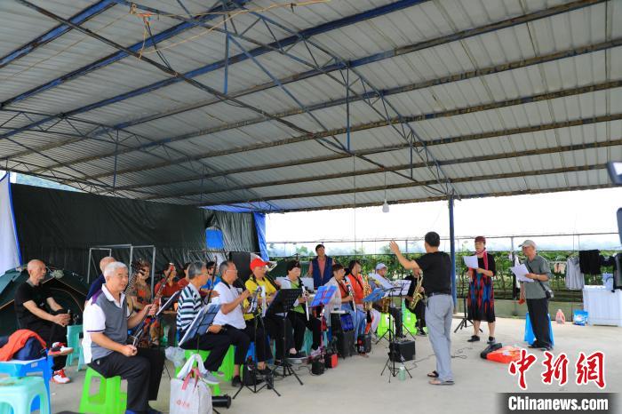 8月10日,在貴州省遵義市桐梓縣九壩鎮(zhèn)避暑的旅居游客們,練習(xí)唱歌和器樂(lè)演奏。李甜甜攝
