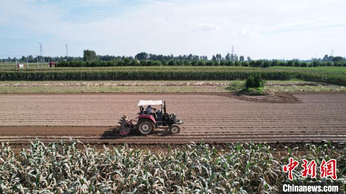 8月14日,河北省涿州市刁窩鎮(zhèn)小豹子莊村,村民李景山家的耕地開始復(fù)耕。(無人機照片)中新社記者 翟羽佳 攝