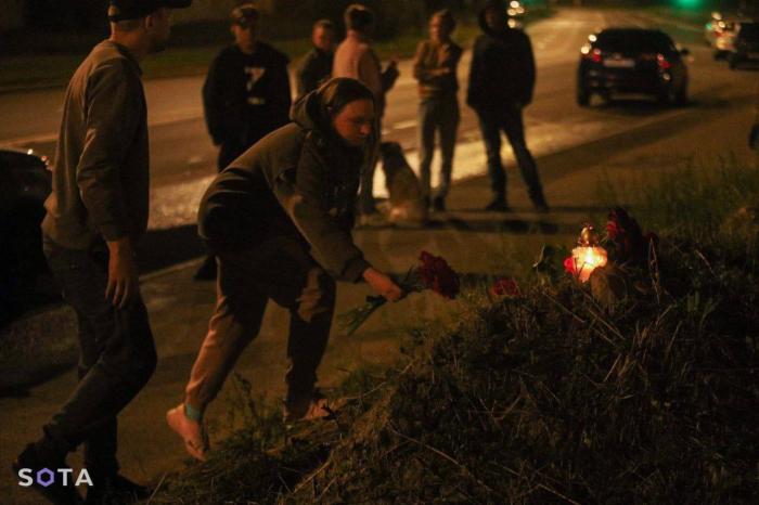 隨后,該頻道發(fā)布了圣彼得堡“瓦格納中心”大樓用燈光點亮“十字架”圖案,以及“瓦格納中心”前擺放著鮮花、蠟燭和瓦格納組織標志等物品,有人前往該地點獻花的畫面。