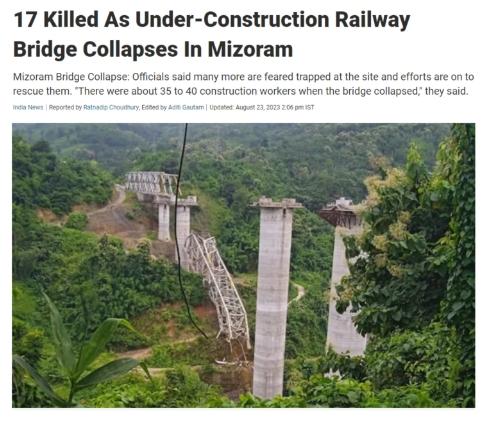 據(jù)報(bào)道,當(dāng)?shù)毓賳T們表示,當(dāng)天上午約10時(shí),米佐拉姆邦塞朗地區(qū)附近一座正在施工的鐵路橋突然倒塌,當(dāng)前仍幾人被困現(xiàn)場(chǎng),當(dāng)局正努力營(yíng)救他們。