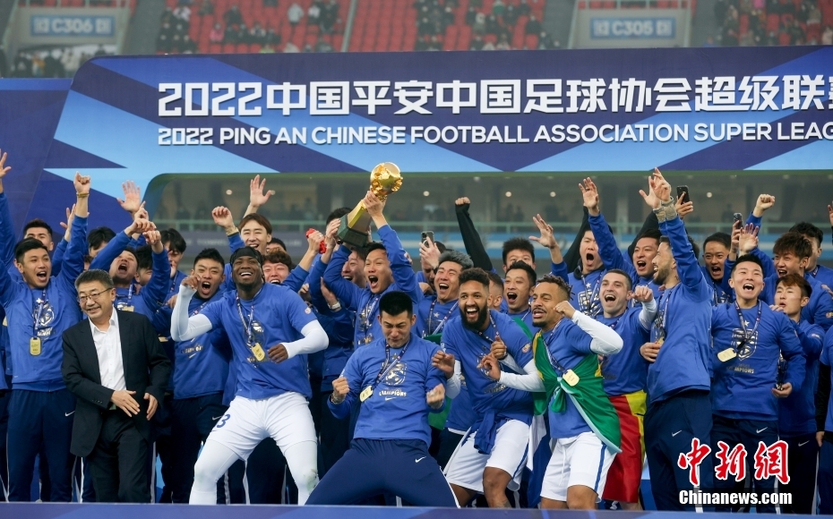 武漢三鎮(zhèn)奪得2022賽季中超冠軍。中新社記者 張暢 攝